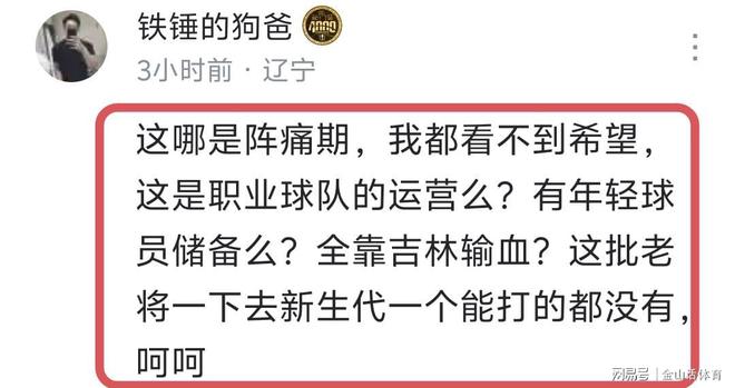 “这三场比赛不尽如人意,随着联赛的临近,时间都非常紧迫,但是我依然相信球队的每个人在联赛开始前会有一个变化,会全力以赴迎接接下来的比赛。”,杨鸣的总结可谓长篇大论,却只字未提球队青黄不接的现状,只字未提近几个赛季“死操老将”,自己该承担的责任,反而找了一大堆理由来“甩锅”。