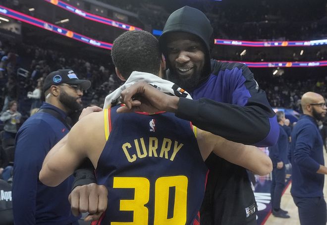 而专栏记者辛格尔透露,早在今年2月份勇士尝试再度得到杜兰特时,杜兰特本人直接和库里沟通,认为重聚对双方都不合适,叫停交易,太阳和勇士才作罢。一直以来,杜兰特给人的感觉是不值得依靠和信赖,性格比较软弱。从雷霆跳到勇士背刺威少,在勇士拿到两个总决赛MVP,却在格林面前抬不起头,甚至没人会给他撑腰;包括在19年杜兰特总决赛被迫强行复出导致跟腱重伤。他其实很无助,但没人在意他的健康,只希望他拯救球队。过去几年,杜兰特屡屡失败,看起来担不起球队核心的角色。