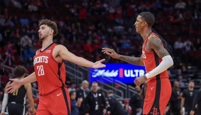 11月30日消息,今天NBA常规赛继续进行,火箭队主场迎战步行者。这场比赛申京继续缺席,火箭沿用了上一场的首发。比赛开始之后,双方还是有来有往,火箭首节30:25领先。次节比赛,火箭队进攻端开始发力,在杜兰特的率领下火箭打出流畅进攻,瞬间拉开了分差。进入下半场,步行者进攻回暖,火箭失误增加,但调整后再次打出强势进攻。末节比赛,步行者追分无望,火箭最终拿下胜利。本场比赛中,杜兰特拿到了30分6板5助攻,小史密斯21分,阿门20分8板7助攻,伊森13分,谢泼德13分,亚当斯8分,芬尼-史密斯6分,卡佩拉6分,奥科吉3分,泰特2分。