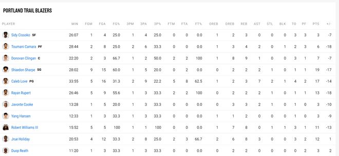 全场比赛杨瀚森12分33秒,三分3中1,拿到3分2篮板1失误,在场-9,杨瀚森在开拓者的定位就是一个拉开空间的四号位。